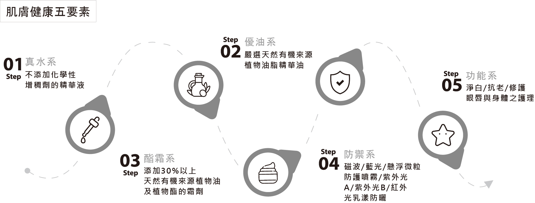 我們堅守信念,我們永不放棄,我們認真對待「每一個成分」對於肌膚與環境的影響!我們相信唯有給肌膚真實有用的成份,避免有害物質的傷害,健康美麗才會真正到來! 未來的我們才能更無懼歲月及環境的挑戰。