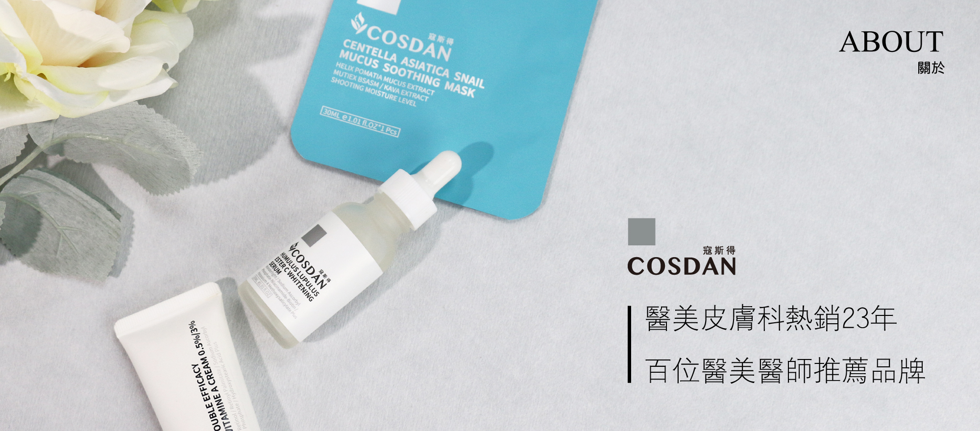 COSDAN寇斯得 以其醫療背景對原料及皮膚的了解,致力於摒除傷害肌膚有害物質為前提,堅持使用對皮膚有用的成份 ,並提出皮膚健康的五大核心保養,喚醒您對皮膚健康的渴望。
