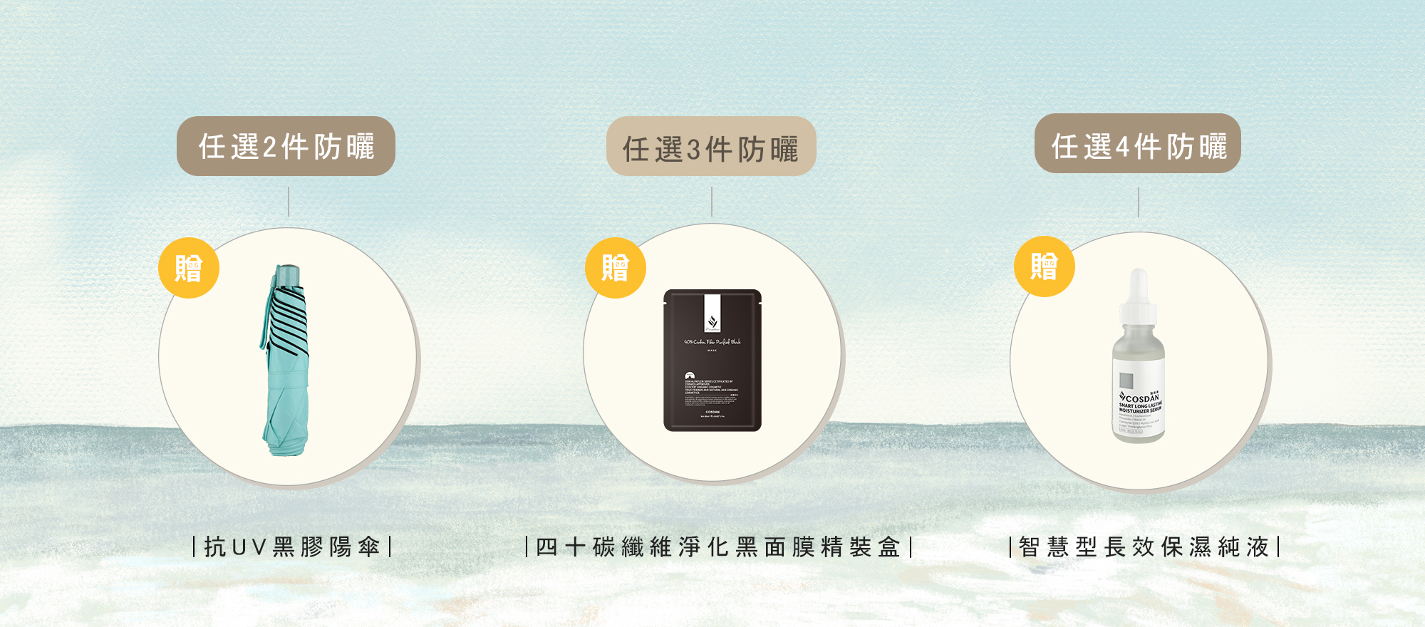 任選2件防曬產品即可免費獲得【COSDAN獨家抗UV摺疊黑膠陽傘(顏色隨機)】*1