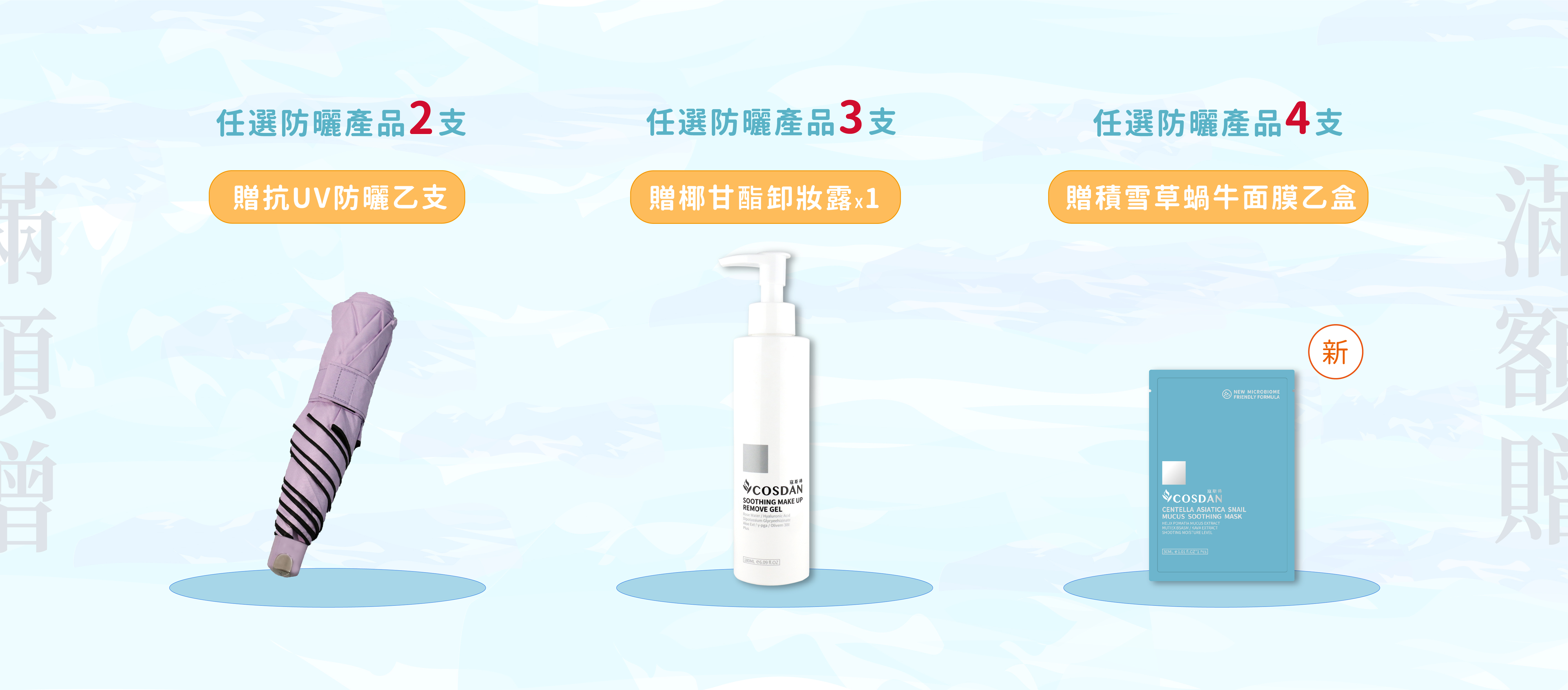 任選2件防曬產品即可免費獲得【COSDAN獨家抗UV摺疊黑膠陽傘(顏色隨機)】*1