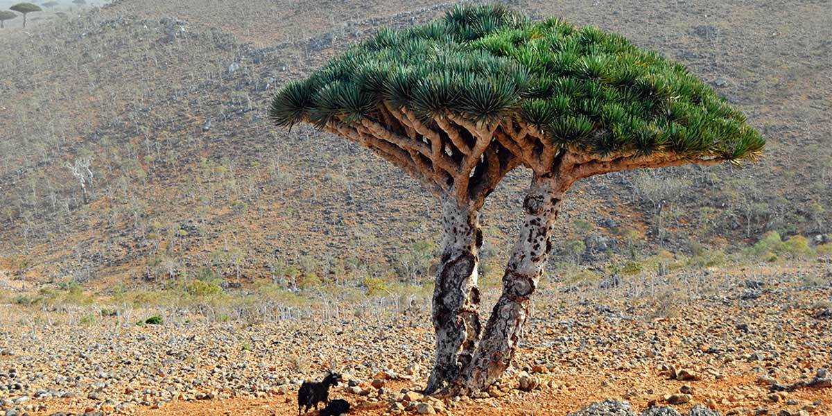 龍血樹號稱是地球上最長壽的樹種之一,主要生長在非洲和亞洲南部等熱帶地區;其外型如同漏斗一般,可以有效接住每一滴雨水,而枝幹則像是渠道,將雨水導入樹根,因此即使在乾旱無雨的索科特拉島,它也能夠完全適應。因生長緩慢且能長生不老,外觀很獨特,冠茂密像倒轉的雨傘。