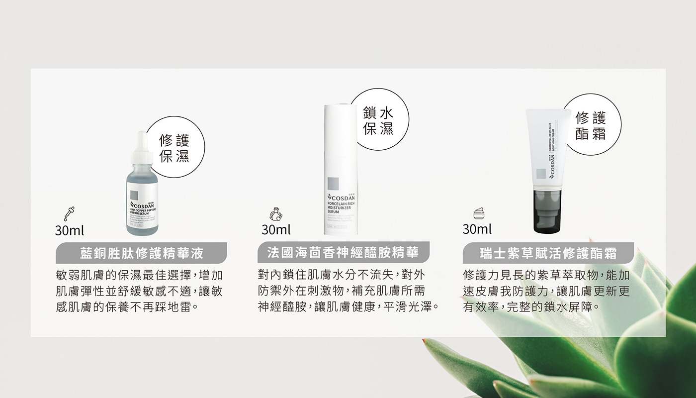 #以多種植物來源且對皮膚健康很重要的神經酼胺做為皮膚緊鎖細微水分子及建構長效鎖水網的防禦系統