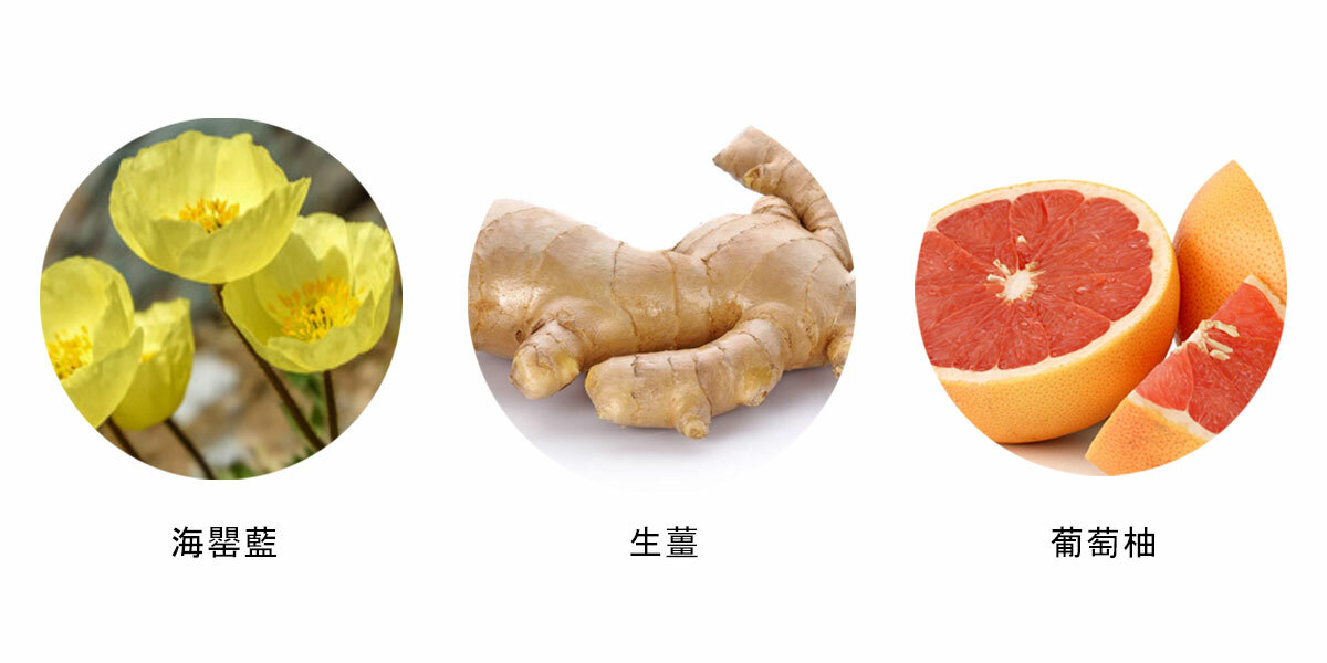 白芥芽+薑+葡萄柚=紓壓的味道與溫和的曲線修飾
