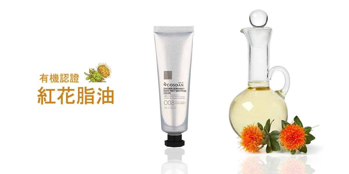 為改善這些問題,我們擷取富含Vitamin F 且符合法國有機及天然植物來源認證紅花脂油成份,希望含有大量的必需脂肪酸 (ω-6脂肪酸)亞麻油酸的紅花酯油能給你肌膚更完整的保護及修護力,平滑粗糙及滋潤乾燥的手足,讓手足恢復柔嫩的光采,溫潤你的健康與美麗是我們一起努力的方向。