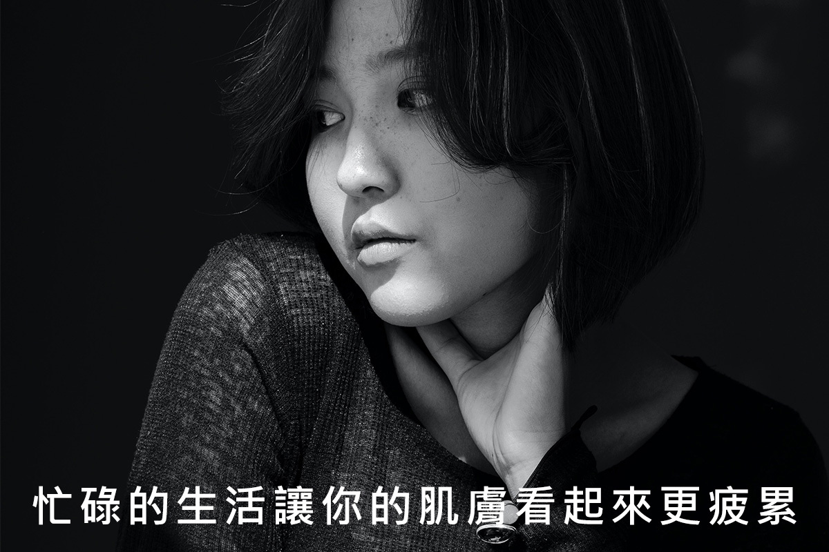 忙碌的生活,總給身心過多的負擔,壓力、疲倦讓皮膚得不到喘息,加上年齡的增長、紫外光的刺激,讓皮膚黯沉、泛黃、肌膚因外在壓力影響每況愈下,變得敏感、浮現細紋、乾燥甚至肌膚出現色素沉澱等斑點,這些狀況讓你的肌膚看起來更疲累,即使上了妝,也掩不住臉上的疲憊